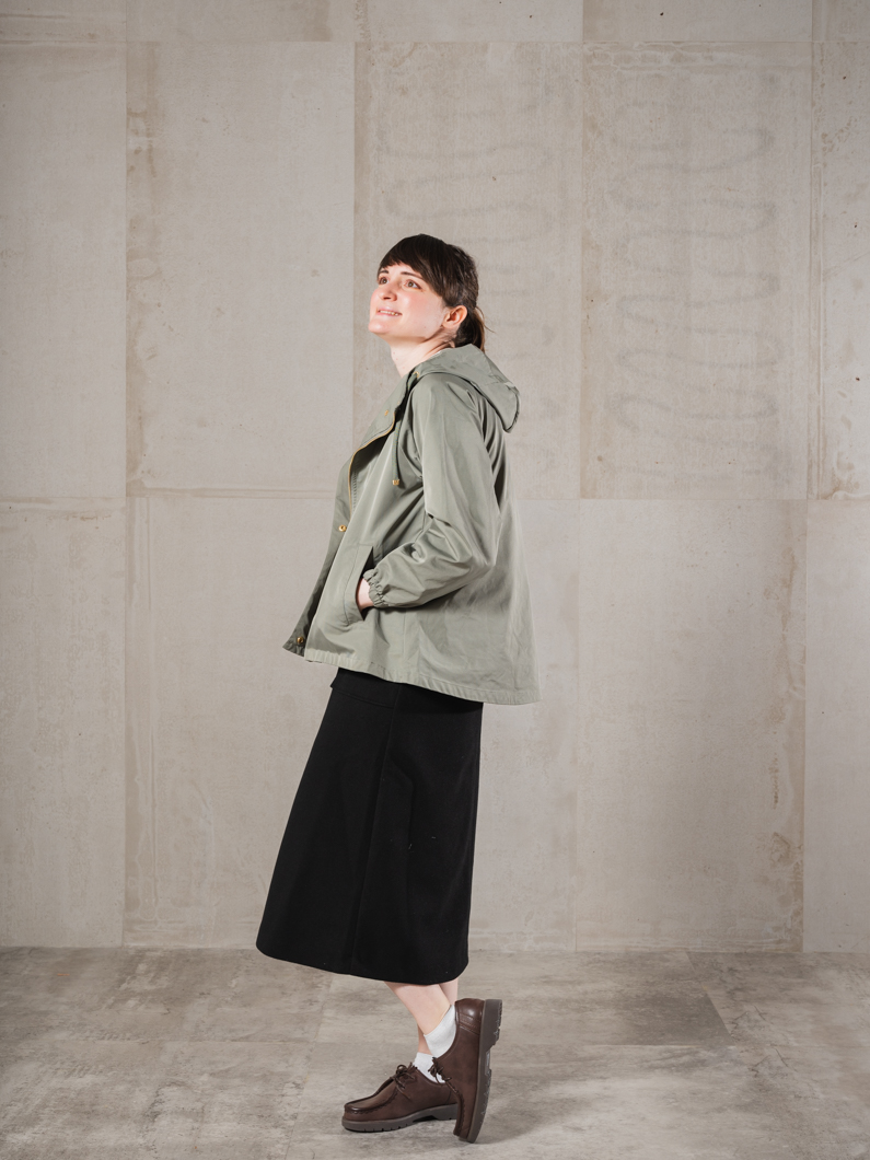 ゴールドの金具やドット釦もさり気ないアクセント。